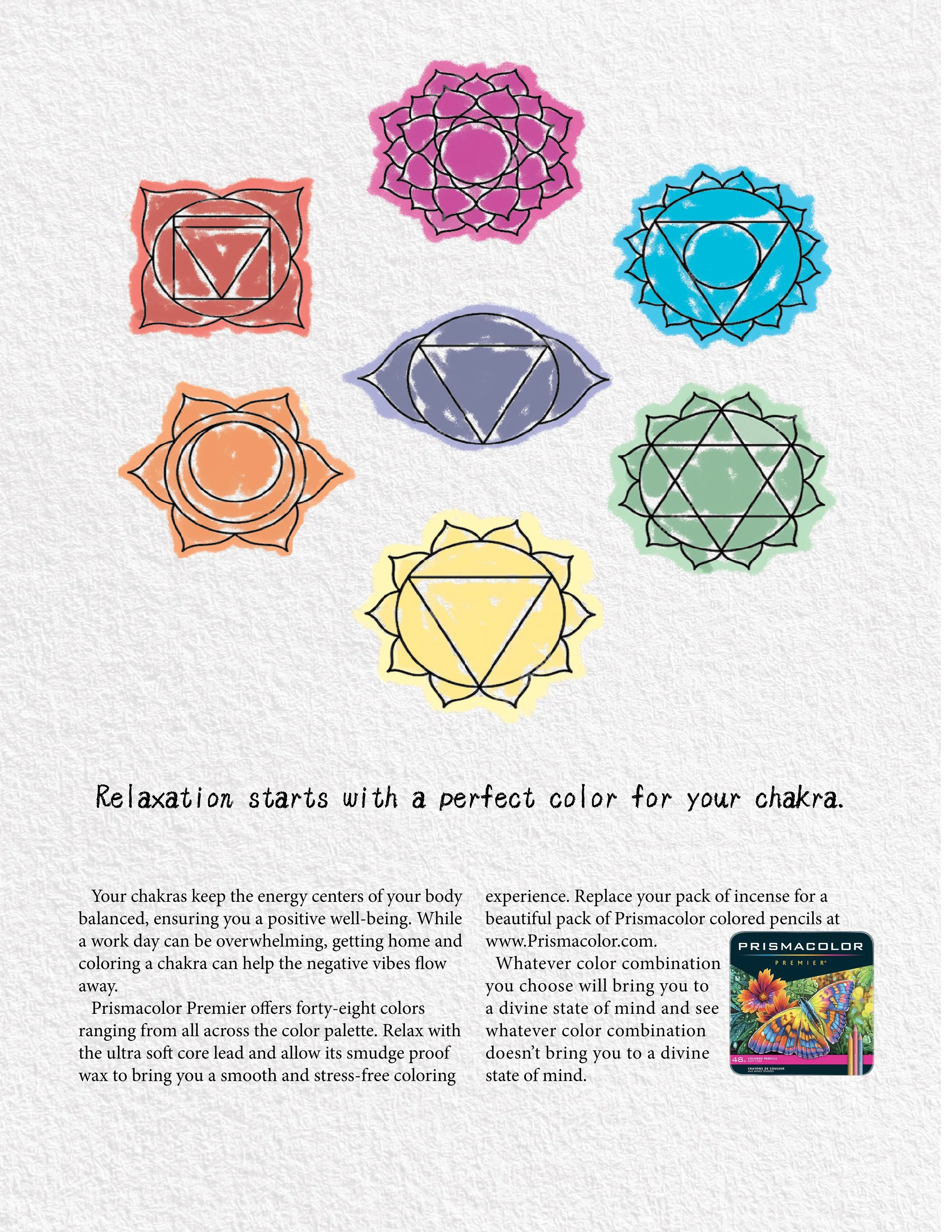 Coloring has been proven to promote positive mental health and can be used as an effective form of relaxation. In this campaign, we took it a step further; we believe that coloring can act as a method of meditation. By incorporating the concept of the seven chakras, which can be unlocked through meditation, we highlighted some of the benefits of using PrismaColor Premier colored pencils. We showcased the brand's wide range of colors to represent these chakras and their associated benefits. We want to let people know that our pencils’ easy blend-ability, and silky smooth wax makes coloring a fun way to reach your zen.